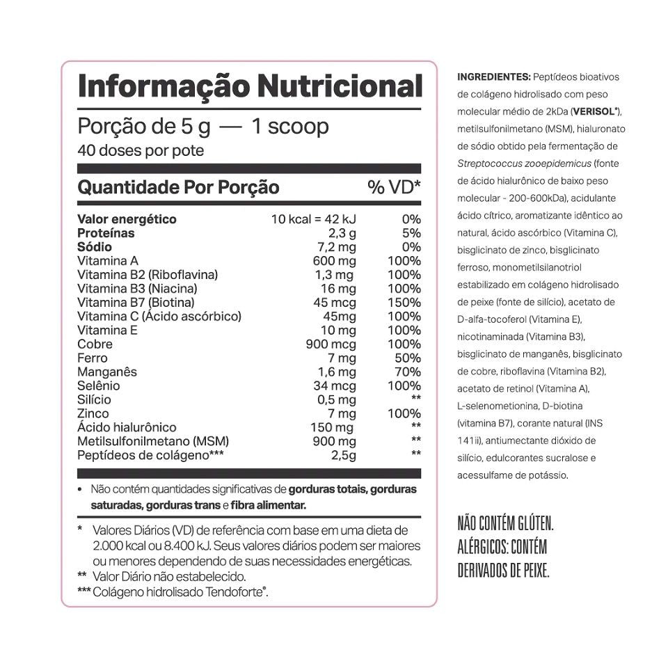 PeptDop Beauty (200g)        PEPTDOP™ BEAUTY é um suplemento alimentar composto por VERISOL, uma substância bioativa com benefícios comprovados para a manutenção da saúde da pele, que age neutralizando a perda de matriz extracelular colagenosa de dentro para fora, além de vitaminas e minerais que auxiliam na proteção dos danos causados pelos radicais livres. PEPTDOP™ BEAUTY é sem adição de açúcar e possui fórmula instantânea de fácil diluição, além de sabores deliciosos para você tomar a qualquer hora do dia e em qualquer lugar.   Benefícios:   - 150mg de Ácido hialurônico, por porção;- 500mcg de Silício;- 2,5g de Colágeno Verisol, por porção;- Rico em vitaminas;- Auxilia no retardamento e minimização dos sinais de envelhecimento cutâneo;- Contribui para a proteção e saúde da pele;- Reduz rugas;- Aumenta a deposição de colágeno na epiderme;- Contribui para a saúde das unhas e cabelo;- Proporciona mais saúde, bem-estar e qualidade de vida.