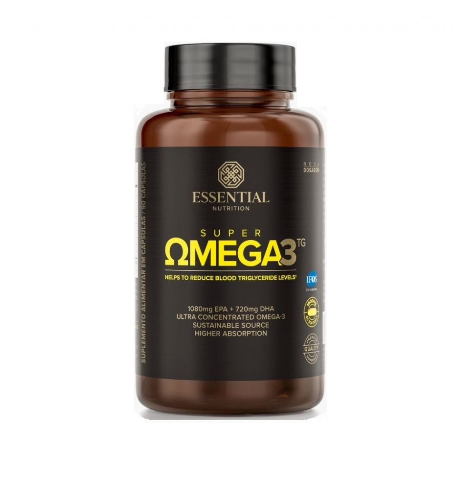 SUPER ÔMEGA 3 TG - ESSENTIAL NUTRITION O QUE É SUPER ÔMEGA 3 TG O ômega-3 é amplamente estudado pela ciência. Seu consumo auxilia na manutenção de níveis saudáveis de triglicerídeos desde que associado a uma alimentação equilibrada e hábitos de vida saudáveis. Mas, para que possa levar somente benefícios ao organismo, sua concentração e pureza são essenciais. O Super Ômega 3 TG Essential é obtido por processo patenteado de destilação molecular, que oferece alta concentração de EPA e DHA e padrões de pureza extremamente rígidos em relação aos metais pesados e demais contaminantes como PCBs, mercúrio e dioxinas. O QUE É TG? Quando o ômega-3 está na forma de Triglicerídeos (TG), ou seja, na mesma forma em que é encontrado na natureza, é mais fácil para o organismo reconhecer e absorver, proporcionando também mais conforto gástrico. 30% MAIS ABSORÇÃO. CERTIFICAÇÃO IFOS O International Fish Oil Standards Program (IFOS) é referência mundial no controle de qualidade de suplementos de óleo de peixe ricos em ômega-3. Rígidos critérios avaliam a concentração de EPA e DHA e índices de acidez, oxidação, metais pesados e compostos orgânicos altamente tóxicos como dioxinas, PCBs e furanos. Super Ômega 3 TG é certificado com a pontuação máxima de 5 estrelas. QUAL A DIFERENÇA ENTRE O SUPER ÔMEGA 3 TG e DHA TG ESSENTIAL? Tanto o Super Ômega 3 TG quanto o DHA TG são suplementos fontes de ômega-3 da linha Essential Nutrition. Indicados para todas as fases da vida, apresentam excelência em qualidade, procedência e absorção. Sua diferença está atrelada à concentração de EPA e DHA e consequentemente suas indicações também. O DHA TG Essential contém 500mg de DHA e 100mg de EPA por cápsula, enquanto o Super Ômega 3 TG Essential contém 1080mg de EPA e 720mg de DHA por porção A escolha por cada um deve ser avaliada de acordo com suas necessidades individuais. Peça orientação de um médico ou nutricionista. BENEFÍCIOS: - Certificação 5 estrelas da IFOS de excelência de qualidade que assegura a pureza do produto- Maior nível de pureza;- Alta concentração;- Livre de metais e contaminantes;- Evita a sensação de retrogosto;- Óleo de peixe em triglicerídeos (TG);- Forma de superior biodisponibilidade e absorção.