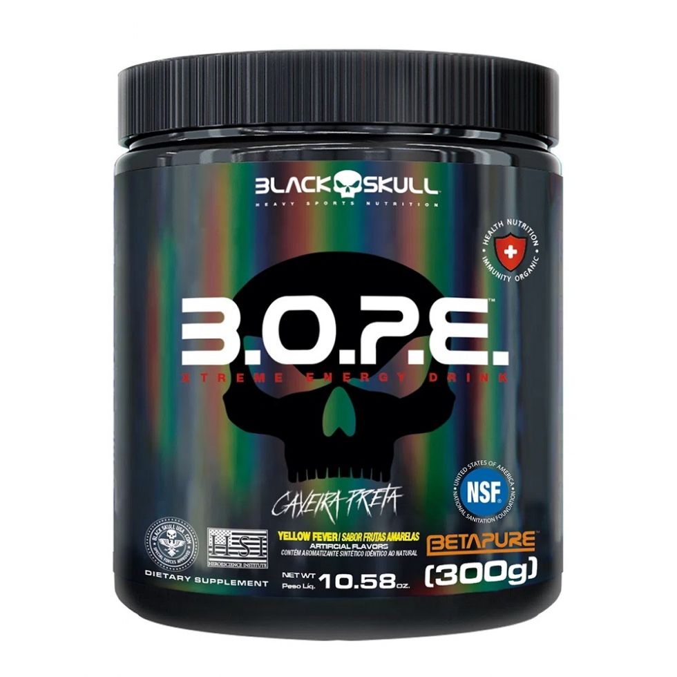 BOPE Pré Treino (300g) O Pré Treino B.O.P.E faz parte da linha Caveira Preta Series da Black Skull USA e possui em sua fórmula ingredientes como a Creatina, que tem como função aumentar a força e o desenvolvimento muscular; Taurina a qual atua no organismo gerando mais energia; Arginina que melhora a vasodilatação e a Cafeína, que além de ser um ótimo estimulante, gera mais energia, foco e concentração durante o treino. Além disso, BOPE Pré Treino (300g) é certificado pela NSF International, uma organização independente sem fins lucrativos que desenvolve padrões e certifica produtos relacionados à segurança alimentaar. O selo NSF indica que o produto foi testado e avaliado quanto à sua qualidade, segurança e desempenho, e atende aos padrões e requisitos estabelecidos pela NSF. A cafeína auxilia no aumento do estado de alerta e na melhora da concentração e no aumento da capacidade de resistência e no desempenho de exercícios físicos de resistência. Já a creatina auxilia no aumento do desempenho físico durante exercícios repetidos de curta duração e alta intensidade. Benefícios: - Tira o cansaço;- Aumenta disposição;- Melhora o rendimento nos exercícios;- Aumenta a força.