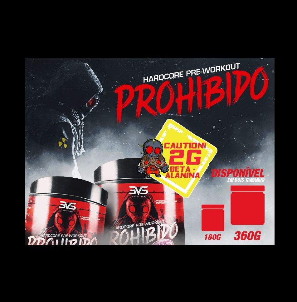Prohibido HardCore Pré-Workout (180g) - 3VS         Prohibido, um suplemento pré treino que fornece energia do início ao fim dos seus treinos, aumenta a sua força, foco e concentração garantindo os melhores resultados em suas atividades. O produto é composto por beta alanina, arginina, creatina, taurina, L-tirosina e palatinose.       Com Prohibido 3VS Nutrition é o fim da energia baixa e falta de motivação para os treinos. Experimente!   BENEFICIOS   * Fornece energia, resistência e força;* Acelera o metabolismo aumentando a quebra de gordura;* Aumenta a disposição;* Foco e concentração;* Menos fadiga e mais disposição.