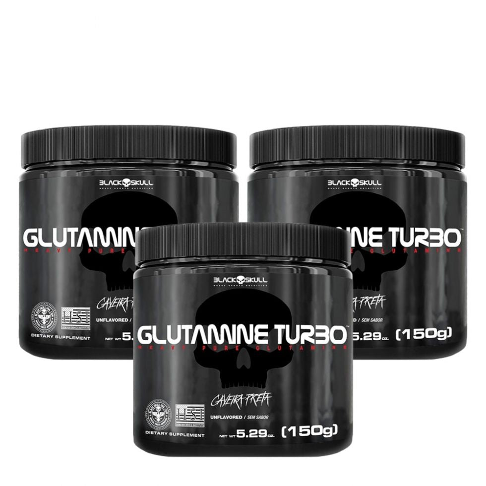Glutamine Turbo (150g) Composição do Combo:03 unidades Glutamine Turbo (150g) - Black Skull Sobre o produto: Turbo Black Skull é um suplemento à base de glutamina que é um aminoácido importante para evitar o catabolismo muscular, garantir a integridade do tecido e fortalecer o sistema imunológico. BENEFICIOS:* Aumento da síntese proteica;* Diminuição do catabolismo;* Eleva os níveis de hormônio do crescimento;* Ideal para atletas que treinam pesado;* Fortalece o sistema imunológico.