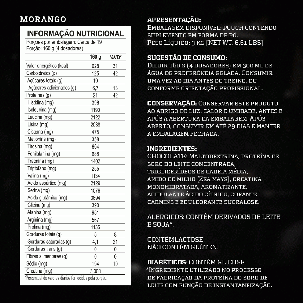 MonsterONE Mass (3kg) Hipercalórico Avançado para Máxima Força e Aumento Muscular O Monsterone da Darkness Integralmedica é um hipercalórico de alta potência, desenvolvido especialmente para atletas que buscam o máximo em ganho de massa muscular e energia prolongada. Sua fórmula é composta por proteínas de alto valor biológico, carboidratos de absorção gradual e creatina, oferecendo força, aumento de volume muscular e performance elevada. Ideal para treinos intensos e momentos de alta demanda energética. Vantagens:Aumento de massa muscular: As proteínas e carboidratos trabalham em conjunto para promover o crescimento da massa magra.Energia prolongada: Carboidratos complexos e TCM fornecem o combustível necessário para treinos intensos.Força e crescimento muscular: A creatina potencializa a potência e o desenvolvimento muscular.
